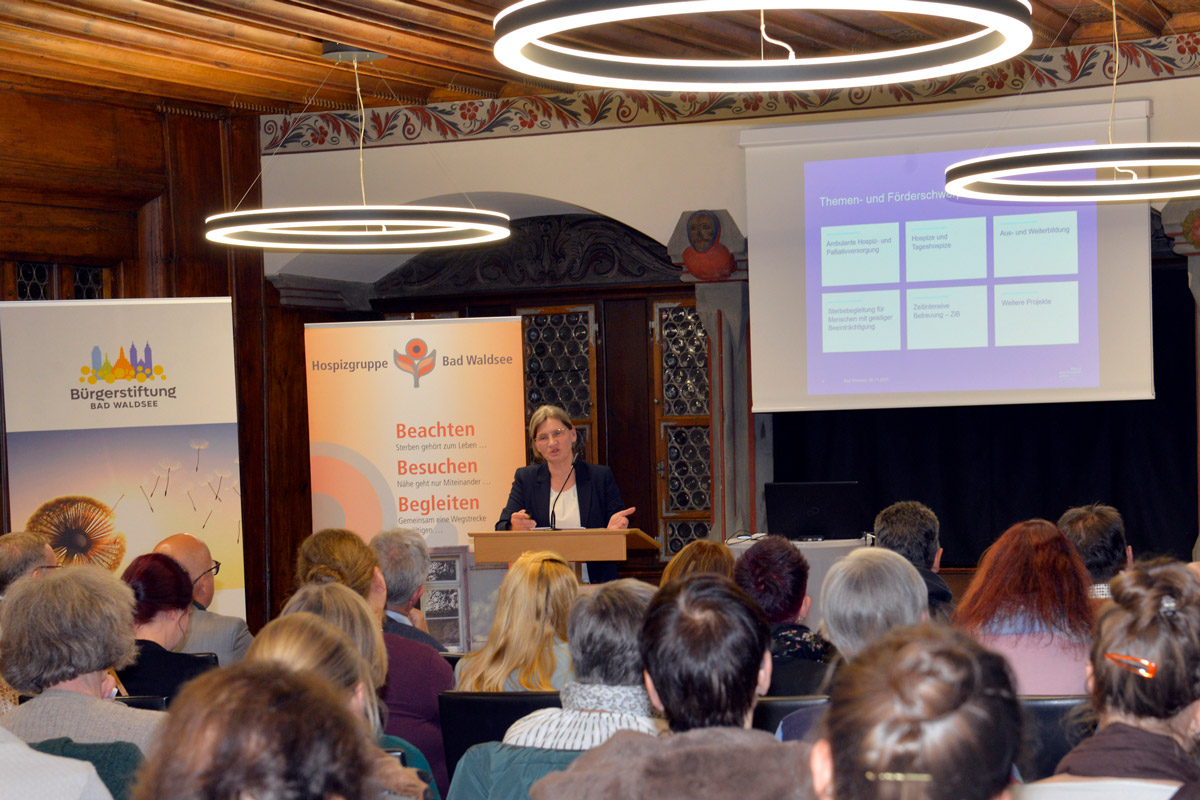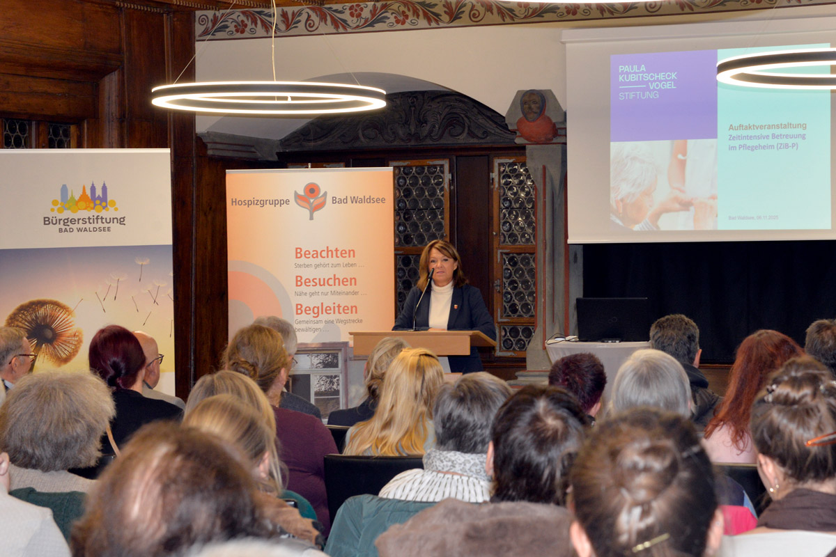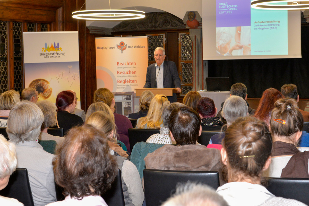 Mit großer Beteiligung fand am Donnerstagabend, 6. November, im Historischen Rathaus die Auftaktveranstaltung für das Projekt zur verbesserten palliativen Versorgung „Zeitintensive Betreuung im Pflegeheim“ (ZiB-P), in Bad Waldsee statt.